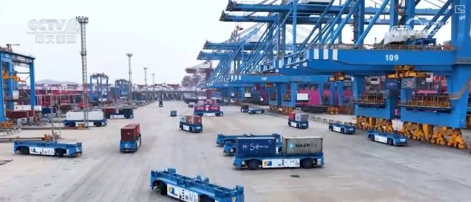 智慧物流枢纽加快升级。天津港上线智能化集装箱码头管控系统,智慧赋能下作业效率大幅提升。上海港多辆全自动无人导引车在码头穿梭,将集装箱精准搬运、依序归位。