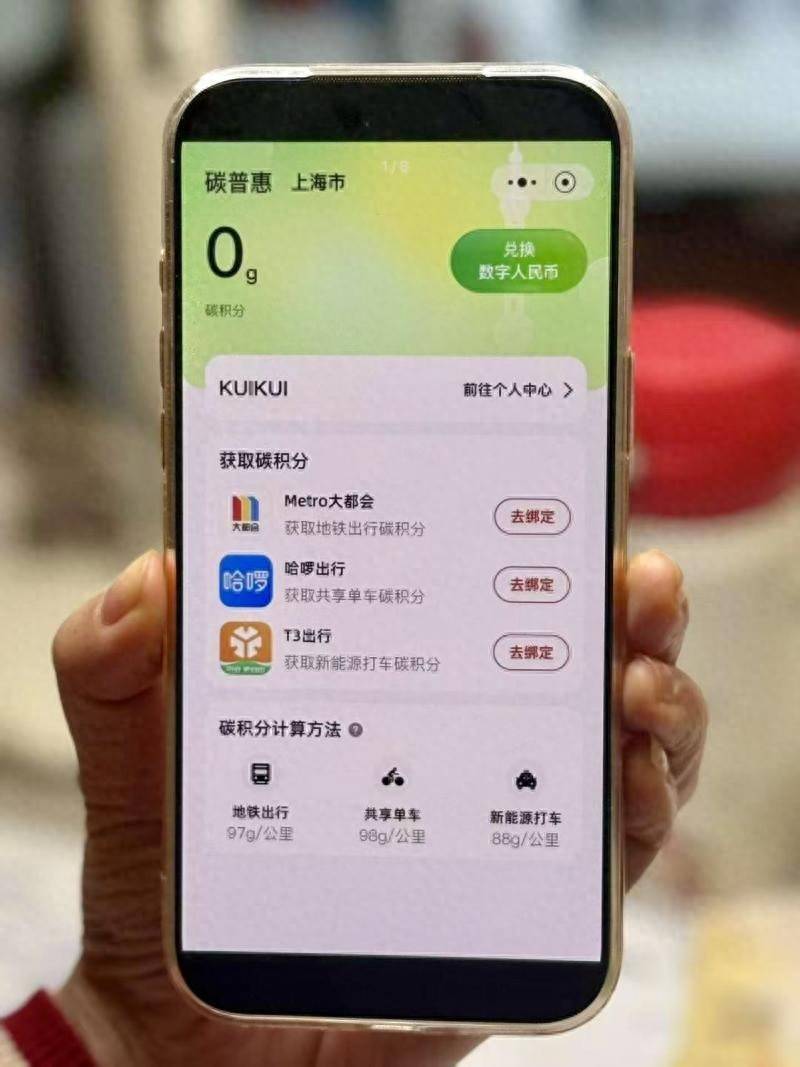 数字人民币运营管理中心表示,数字人民币“碳普惠”服务是鼓励公众践行低碳行为的一项服务,目前先在上海落地。用户开通该服务后,日常绿色低碳行为产生的碳积分将自动归集至“碳普惠”账户,并可以兑换数字人民币。即用户做的每一件环保小事,比如骑共享单车、乘坐地铁公交,都能被量化成“碳积分”。这些碳积分可记录用户的绿色足迹,还可兑换为实实在在的数字人民币。“碳普惠”小程序首批接入Metro大都会(上海地铁)、哈啰出行和T3出行三大平台。